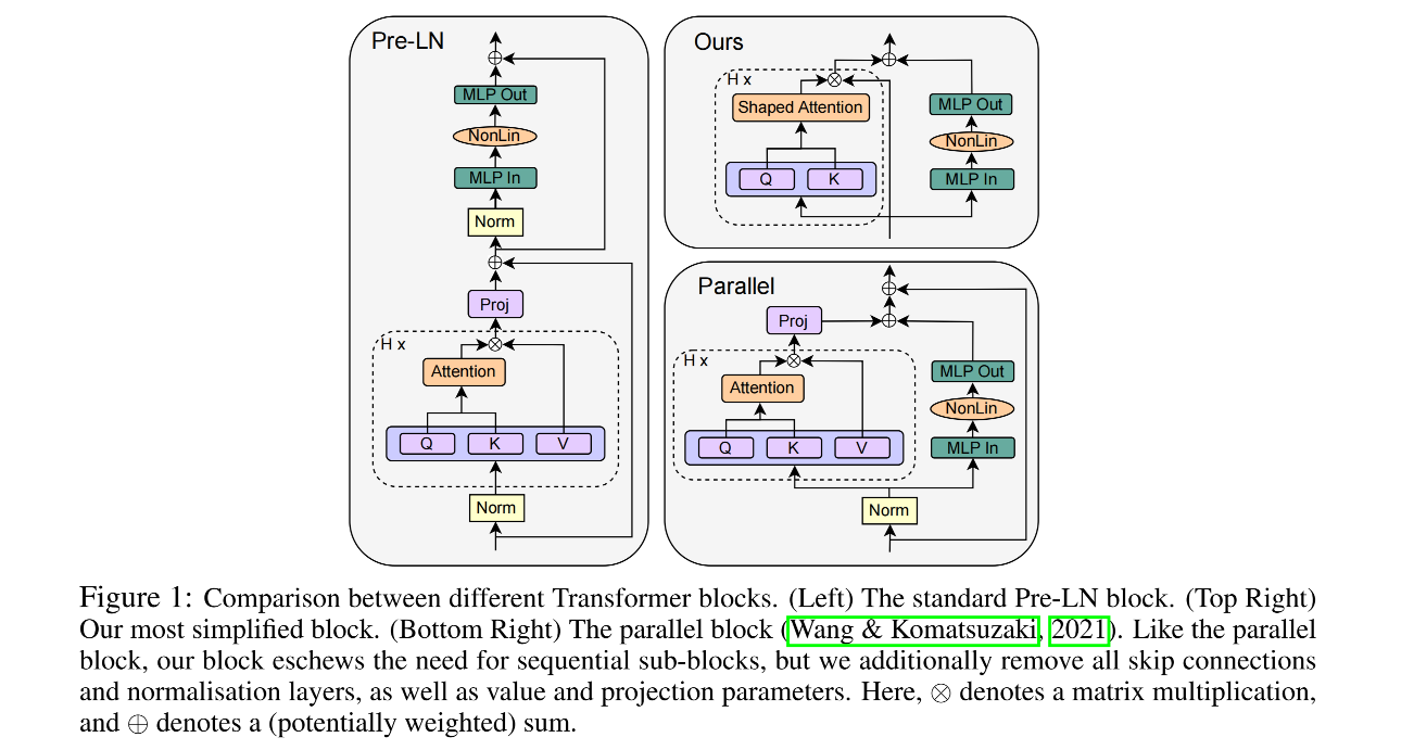 - The paper demonstrates that it's possible to simplify standard transformer blocks significantly without losing training efficiency or performance.