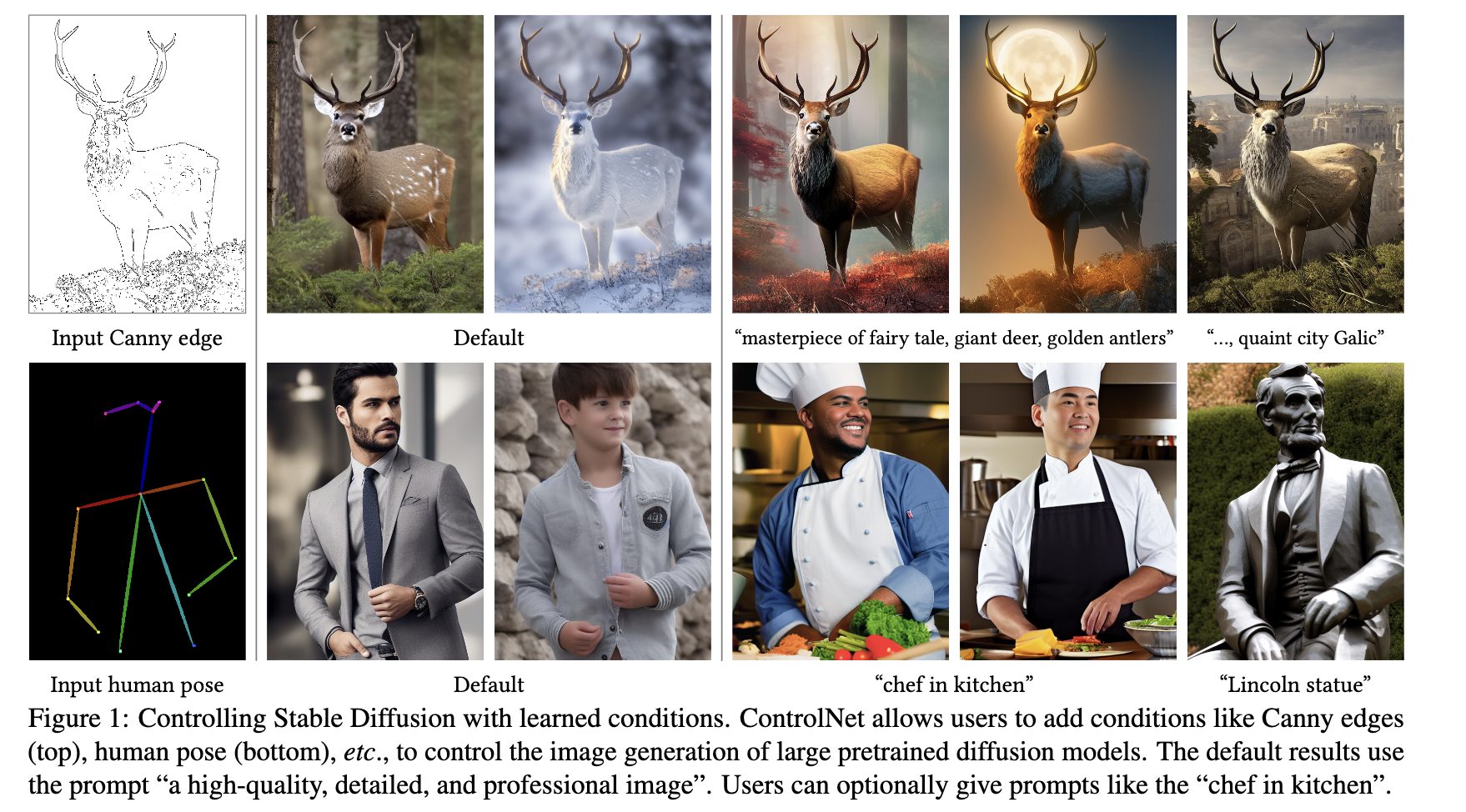 ControlNet is a neural network structure that learns conditional control for large pretrained text-to-image diffusion models. It reuses the large-scale pretrained layers of source models to build a deep and strong encoder to learn specific conditions. The original model and trainable copy are connected via “zero convolution” layers that eliminate harmful noise during training. Extensive experiments verify that ControlNet can effectively control Stable Diffusion with single or multiple conditions, with or without prompts. Results on diverse conditioning datasets show that the ControlNet structure is likely to be applicable to a wider range of conditions, and facilitate relevant applications.